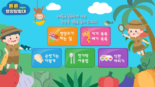 서울특별시교육청(교육감 조희연) 산하 학교보건진흥원(원장 박상근)은 코로나 일상의 비대면 시기에 유치원 및 초등학교 저학년 아동의 올바른 영양·식생활 습관 교육 활성화를 위하여 「영양체험 이러닝 프로그램」과 교육용 애니메이션 「올바르게 숟가락·젓가락을 사용하자!」 교육자료 2종을 개발하였다.