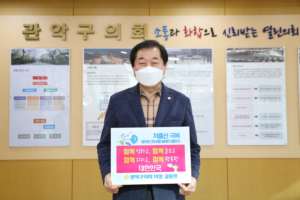길용환 관악구의회 의장이 26일, ‘저출산 극복 범국민 포(4)함’ 릴레이 챌린지에 동참했다.