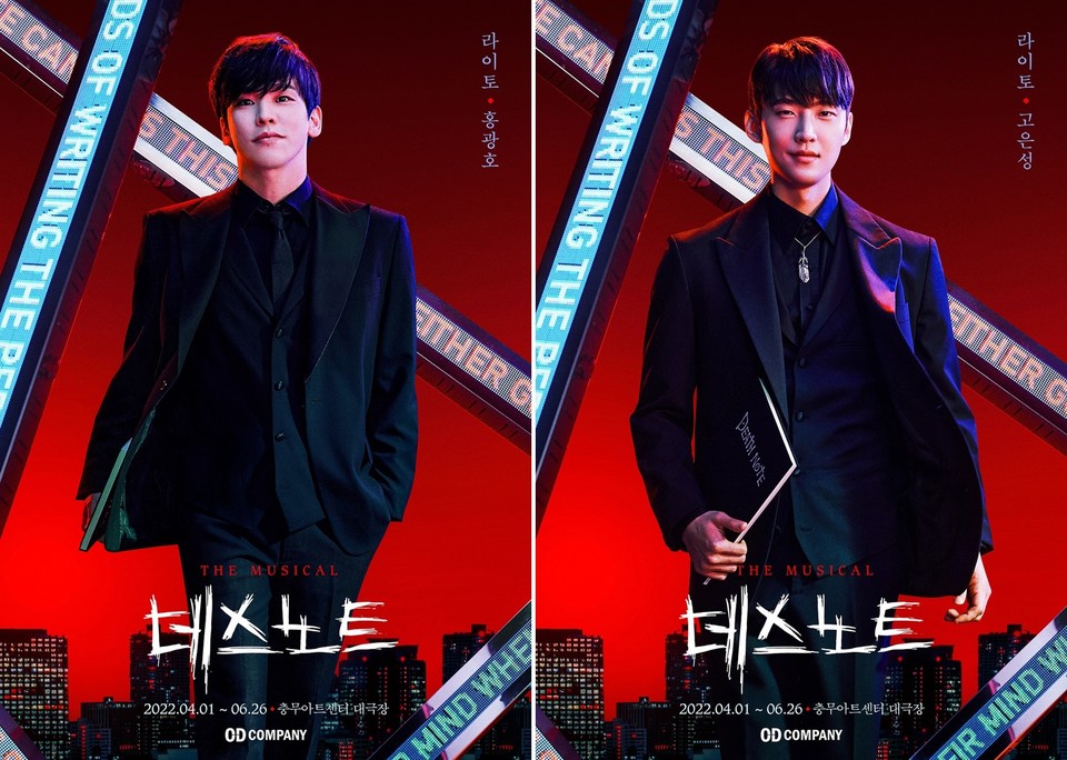 우선 우연히 ‘데스노트’를 주워 범죄자를 처단하는 천재적인 두뇌를 지닌 ‘야가미 라이토’ 역에는 홍광호, 고은성이 캐스팅되었다. 타의 추종을 불허하는 실력으로 국내 내로라하는 작품들에서 거침없는 행보를 이어가고 있는 배우이자 유튜브 콘텐츠에서 한국 뮤지컬 최초 1,500만 이상 조회 수를 달성한 뮤지컬 ‘데스노트 M/V’의 주인공 홍광호가 다시 <데스노트>로 돌아온다. 초연 당시 카리스마 넘치는 무대로 심리 스릴러의 진면모를 보여주며 작품의 흥행을 견인했던 만큼 모두를 전율케하는 역대급 무대를 선사할 예정이다. 뮤지컬 <젠틀맨스가이드>, <헤드윅>, <그레이트코멧>, <노트르담드파리> 등 다양한 작품에서 팔색조 매력으로 차세대 뮤지컬 스타로서 입지를 확실히 굳힌 고은성이 새로운 ‘야가미 라이토’ 역에 이름을 올렸다. 뮤지컬, 음반 활동뿐만 아니라 최근 화제를 모았던 TV조선 '내일은 국민가수'에서 탄탄한 실력과 여유 넘치는 무대 매너로 시청자를 사로잡은 그가 악에 잠식당하는 ‘라이토’ 역에 완벽하게 녹아들며 미묘한 감정 변화를 드라마틱 하게 보여줄 것이다.