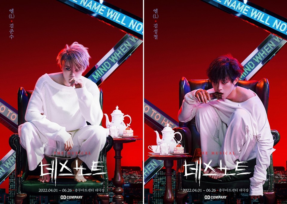 베일에 싸여 있지만 뛰어난 두뇌와 추리력으로 미제 사건을 해결하는 세계 최고의 명탐정 ‘엘(L)’ 역에는 김준수, 김성철이 출연한다. 뮤지컬 <모차르트>, <드라큘라>, <엘리자벳>, <엑스칼리버> 등 매 작품마다 독보적인 캐릭터 변신으로 뜨거운 관심과 흥행을 이끌며 뮤지컬 시장을 팽창시킨 주역인 김준수가 <데스노트>로 돌아온다. 만화에서 금방 튀어나온 듯한 100% 완벽한 싱크로율로 ‘신의 한 수’라는 호평을 받으며 작품 흥행의 원동력이 된 그가 ‘엘(L)’ 그 자체로 분해 ‘야가미 라이토’와 치열한 두뇌게임을 펼치며 절정의 카타르시스를 선사할 예정이다. 또한 SBS 드라마 ‘그해 우리는’에서 열연 중인 김성철이 ‘엘(L)’에 캐스팅되었다. 뮤지컬 <빅피쉬>, <스위니토드>, <베르테르>를 비롯해 드라마, 영화에서 맹활약하며 확실한 눈도장을 찍은 그는 감탄을 자아내는 탁월한 연기력으로 강렬한 인상을 남기는 배우이다. 작품마다 유니크하고 섬세한 감정선으로 극의 밀도를 높여준 만큼 <데스노트>에서 누구보다 날카롭고 예리한 연기로 관객들을 작품에 몰입시킬 예정이다. 싸