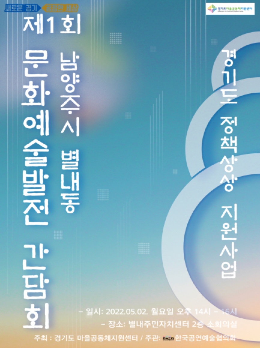 한편, 한국공연예술협의회는 지난 2일 간담회에 이어 상반기 ‘남양주시 별내동 찾아가는 세미나’를 진행할 예정이다.