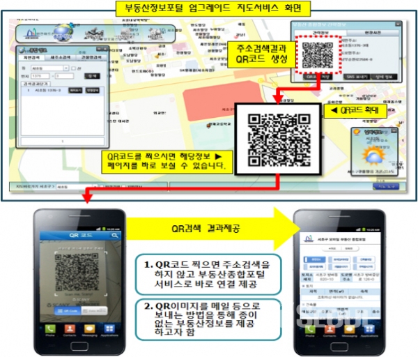 이에 서초구는 ‘지번정보’기능을 추가해 지번을 몰라도 지도에서 해당 위치를 클릭하면 그 위치의 정보를 확인할 수 있도록 기본 검색기능을 업그레이드했다. 구 관계자는 지번으로 위치를 찾던 방식과는 반대로 지도상에서 위치를 클릭하면 지번이 나타나게끔 만들어 단독주택이나 빌라처럼 지번검색이 어려운 곳의 위치정보를 찾는데 특히 효과적으로 이용될 수 있을 것으로 내다봤다. 이렇게 검색된 위치정보는 QR코드로 생성해 이미지화하거나 포털의 종합정보 화면에서 ‘SNS보내기,‘QR코드 저장’을 클릭해 트위터, 페이스북 등으로 전송할 수도 있다.
