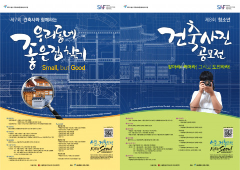 서울, 건축 산책은 출품 건축물의 건축물대장에 명시돼 있는 대표 건축사(설계자) 및 건축주가 참여할 수 있는 ‘제7회 건축사와 함께하는 우리동네 좋은집 찾기 공모전(Small, but Good)’과 중·고등학교 재학생 및 동일 연령대 청소년이 참여할 수 있는 ‘제8회 청소년 건축사진 공모전’으로 진행된다.