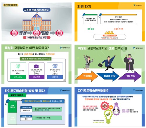 온라인 종합안내 영상 및 자료는 서울특별시교육청 누리집(www.sen.go.kr), 서울고교홍보사이트 하이인포(hinfo.sen.go.kr), 서울특별시교육청 유튜브 채널 및 사회 관계망 서비스(SNS)을 통해 확인할 수 있다.