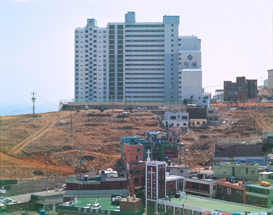 하지만 작가는 이 이미지를 통해 오랫동안 그 곳에서 뿌리를 내리고 살던 이들의 삶의 흔적과 기억이 송두리째 뽑혀 나가고 있으며, 이들이 개발의 주변부로 내몰리고 있음을 역설적으로 드러낸다.