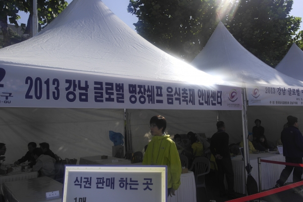 강남글로벌 명장 쉐프 음식축제가 한국외식업 중앙회강남지구회의 주관으로 10월 3일 오전 10시부터 2시까지 코엑스 인근에서 열렸다. 제11회 국제평화마라톤대회와 함께 열린 이번 행사는 리츠칼튼, 노보텔엠베서더, 인터컨티넨탈 등 9개의 호텔업체가 참여했다. 수제버거, 수제핫도그, 스파게티, 불고기, 오리훈제, 커리, 초밥 등의 다양한 메뉴들을 3,000원이라는 저렴한 가격에 제공하여 마라톤 행사에 참여한 시민들에게 큰 호응을 얻었다.