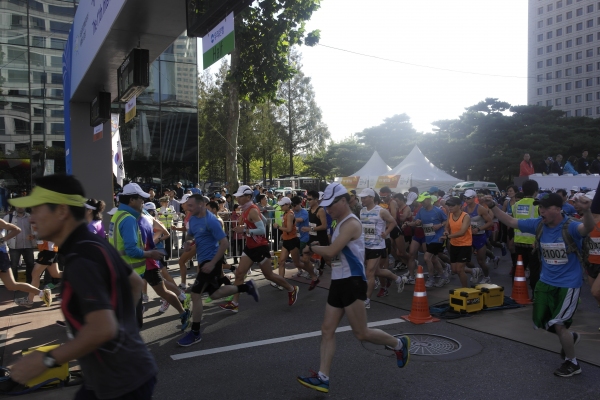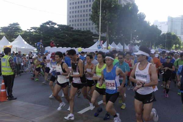 이어서 풀코스, 하프코스, 10km 단축, 5km 건강달리기 순으로 한국전력 앞 영동대로를 출발해 양재천과 탄천, 한강 둔치를 달려 출발지점으로 되돌아 오는 코스로 진행됐다.