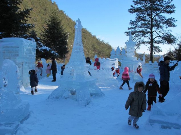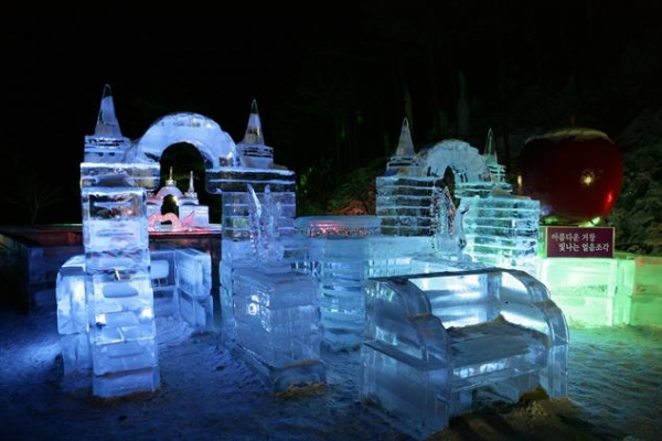 또한, 금원산 얼음체험의 특징인 계곡변을 형형색색으로 물들이는 야간조명 작업과 휴게시설 설치도 병행하고 있어 휴양림 일원이 겨울놀이장으로 변모하고 있다.