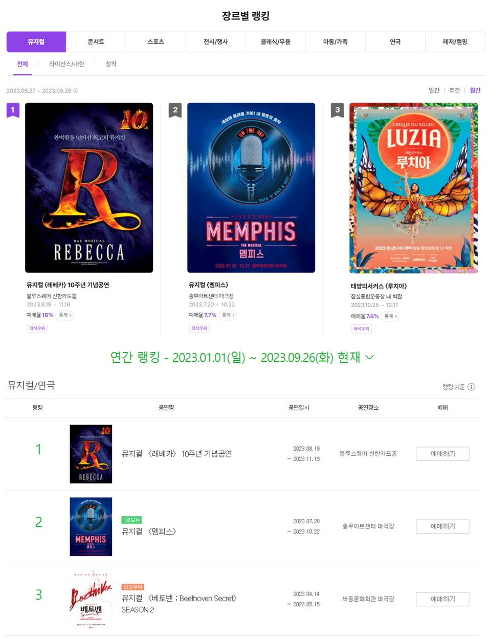 이 같은 인기는 예매 사이트 평점과 예매율 수치로도 증명됐다. 공식 예매처 주간, 월간 1위는 물론, 멜론티켓 2019, 2021, 2023 연간 예매율 1위를 기록하며 화제의 중심에 선 것. 평점 역시 9점대의 높은 평점을 계속해서 유지하며 관객들로부터 극찬을 이끌어냈다. 관객들은 관람 후기를 통해 “기대를 훌쩍 뛰어넘는다”, “인생 뮤지컬을 단번에 갈아치우는 대단한 공연” 등의 호평을 남기며 뮤지컬 ‘레베카’의 감동과 여운을 표현했다.