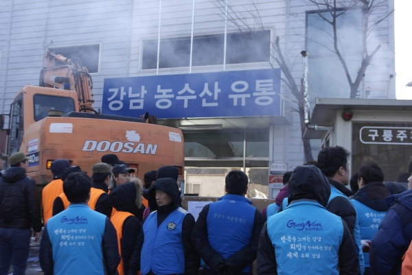 법원 결정이 나오자마자 강남구청은 해당 가설점포에 대한 철거를 위해 투입했던 구청과 용역 업체 직원 등 인력 300여명과 굴삭기 3대 등 장비 일체를 모두 철수 시켰다.