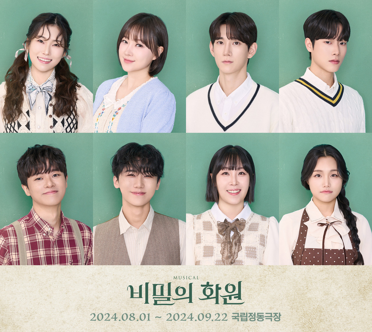 2024 <비밀의 화원>은 신구 조합의 캐스팅으로 새로운 매력을 기대하게 만든다. 에이미&메리 레녹스 역에 김청아, 그룹 나인뮤지스 출신 금조를 비롯하여 찰리&콜린 크레이븐 역에는 김서환과 정백선이 출연한다. 비글&디콘 소어비는 박선영, 그룹 DKZ멤버 종형이 초연에 이어 함께한다. 데보라&마사 소어비 역에는 김지혜, 송영미가 캐스팅되었다. 1인 2역을 맡은 배우들은 환상과 현실을 넘나들며 인물의 심리 변화를 다채롭게 그릴 예정이다.