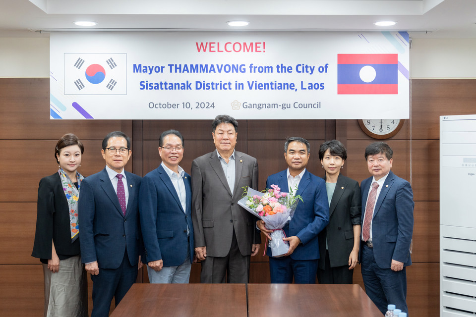 강남구의회(의장 이호귀)는 지난 10일 오전 라오스 비엔티안 시사타낙구장을 직접 접견하고 문화·관광·의료·교육·로봇산업 분야에 대한 교류방안을 논의했다.