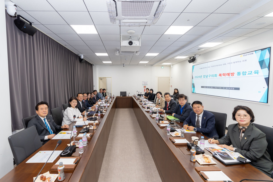 강남구의회(의장 이호귀)는 지난 22일 강남구의회 7층 열린회의실에서 강남구의회 의원들을 대상으로 폭력예방 통합교육을 실시했다.