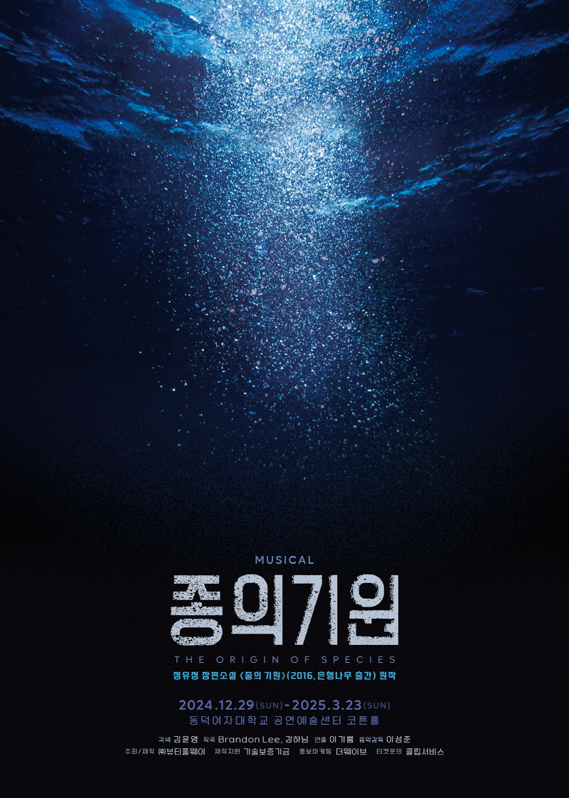 올해 연말, 겨울과 함께 돌아올 뮤지컬 <종의 기원>은 12월 29일(일)부터 3월 23일(일)까지 동덕여자대학교 공연예술센터 코튼홀에서 공연된다.
