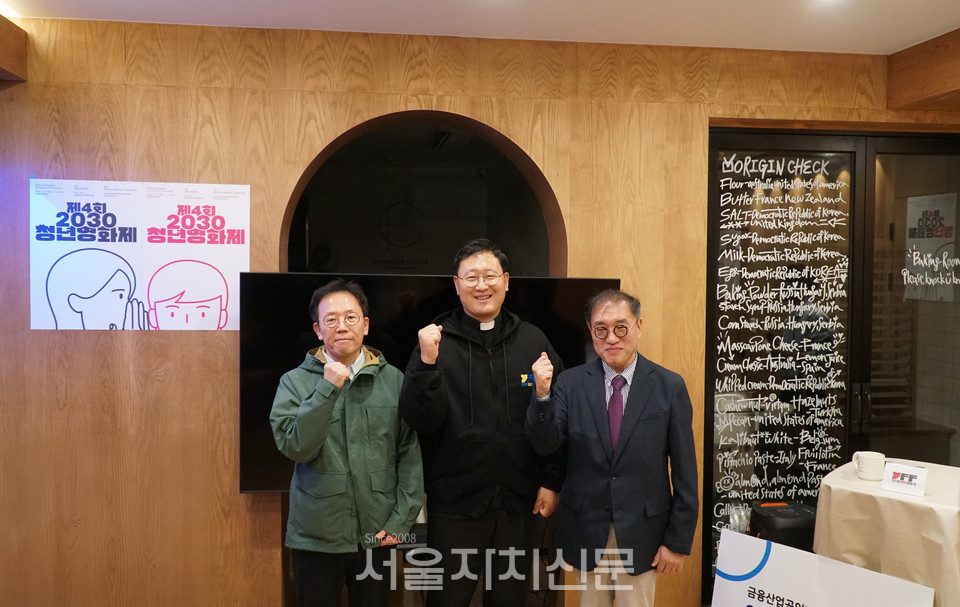 11월 27일(수) 개막을 앞둔 제4회 2030청년영화제(집행위원장 이문수 신부)가 공식 기자회견을 개최했다. 10월 28일(월) 오후 5시 30분 크림슨파더에서 열린 기자회견에는 이문수 집행위원장과 장호준 제작총괄, 정지욱 프로그램 총괄이 참석해 올해 영화제의 특징과 주요 상영작들을 소개했다.