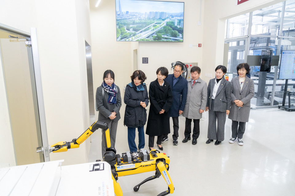 현지확인에는 경제도시위원회 이도희 위원장·김광심 부위원장·이향숙·복진경·이동호·손민기 의원이 함께했으며, 의원들은 테스트필드 운영 현황을 청취한 후, 협업 지능 실증 개발 지원센터·마이스터 로봇화 지원센터·실외 로봇 테스트필드 등 연구 공간을 둘러봤다. 이어 관계자의 설명을 듣고 적극적으로 질의하며, 테스트필드가 한국형 AI 로봇의 발상지로 성장할 수 있는 방안과 로봇 관련 육성사업 지원 방안에 대해 심도 있게 논의했다.