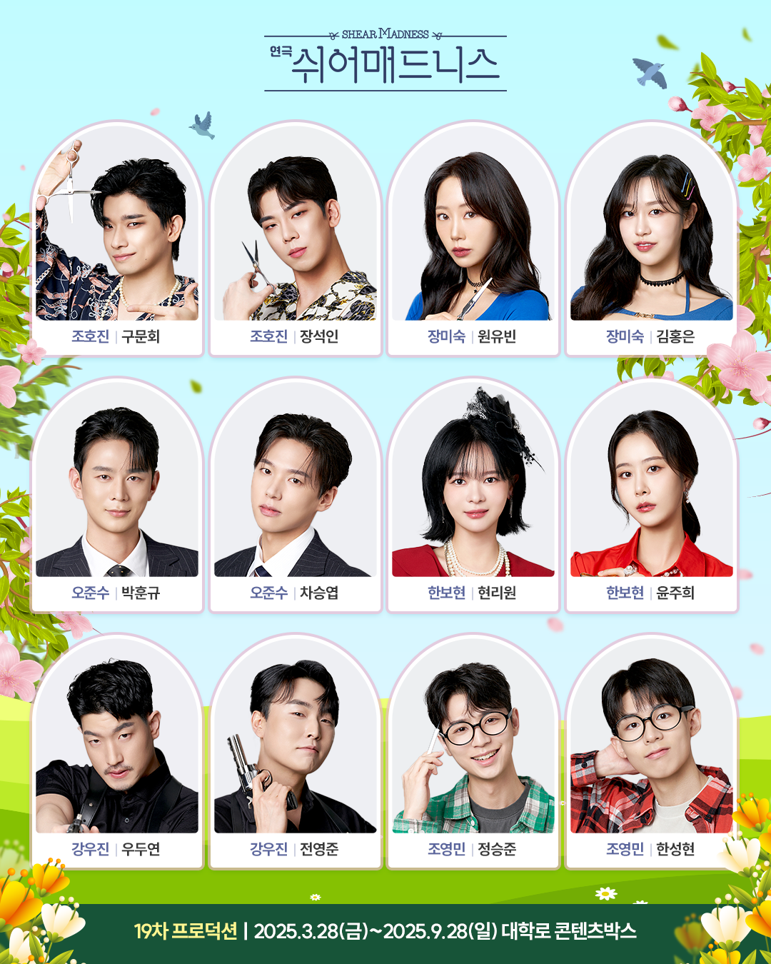 쉬어매드니스 미용실 원장으로 음흉하지만 정열적인 미용사 ‘조호진(조지)’ 역에는 뮤지컬 <온새미로>, <썸데이> 등에 출연하며 입체적인 연기를 선보인 배우 구문회와 색다른 캐릭터로 관객들의 눈을 사로잡을 신예 배우 장석인이 참여하여 극에 에너지를 가득 불어 넣을 예정이다.