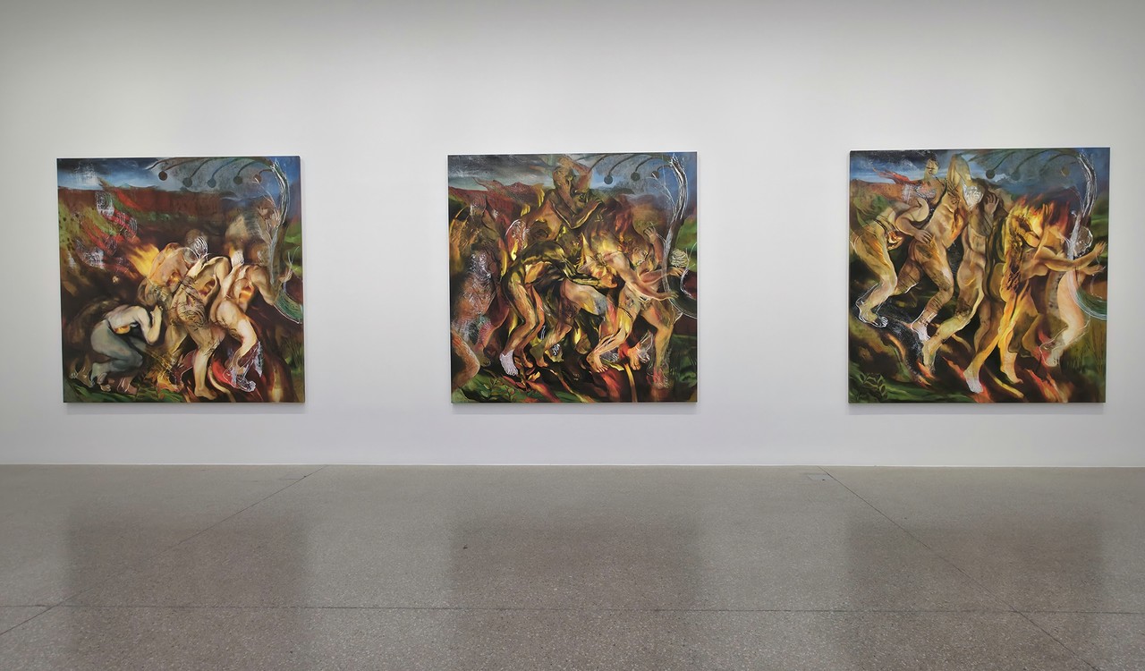 이번 전시에서 단테의 14세기 걸작 <신곡> 첫 번째 부분 '지옥'의 서두에서 영감을 받아 사회적, 정치적 불안과 형이상학적 고통을 회화로 풀어낸 신작 10점을 선보인다.