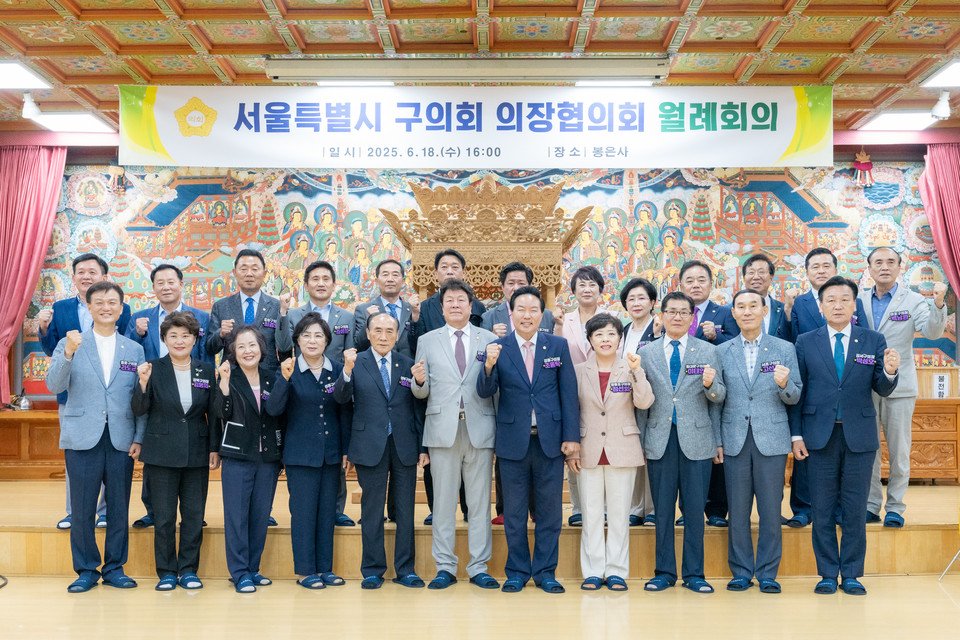 강남구의회(의장 이호귀)는 지난 18일 봉은사에서 ‘서울시 구의회 의장협의회 6월 월례회의(이하‘월례회의’이라 함)’를 개최했다.