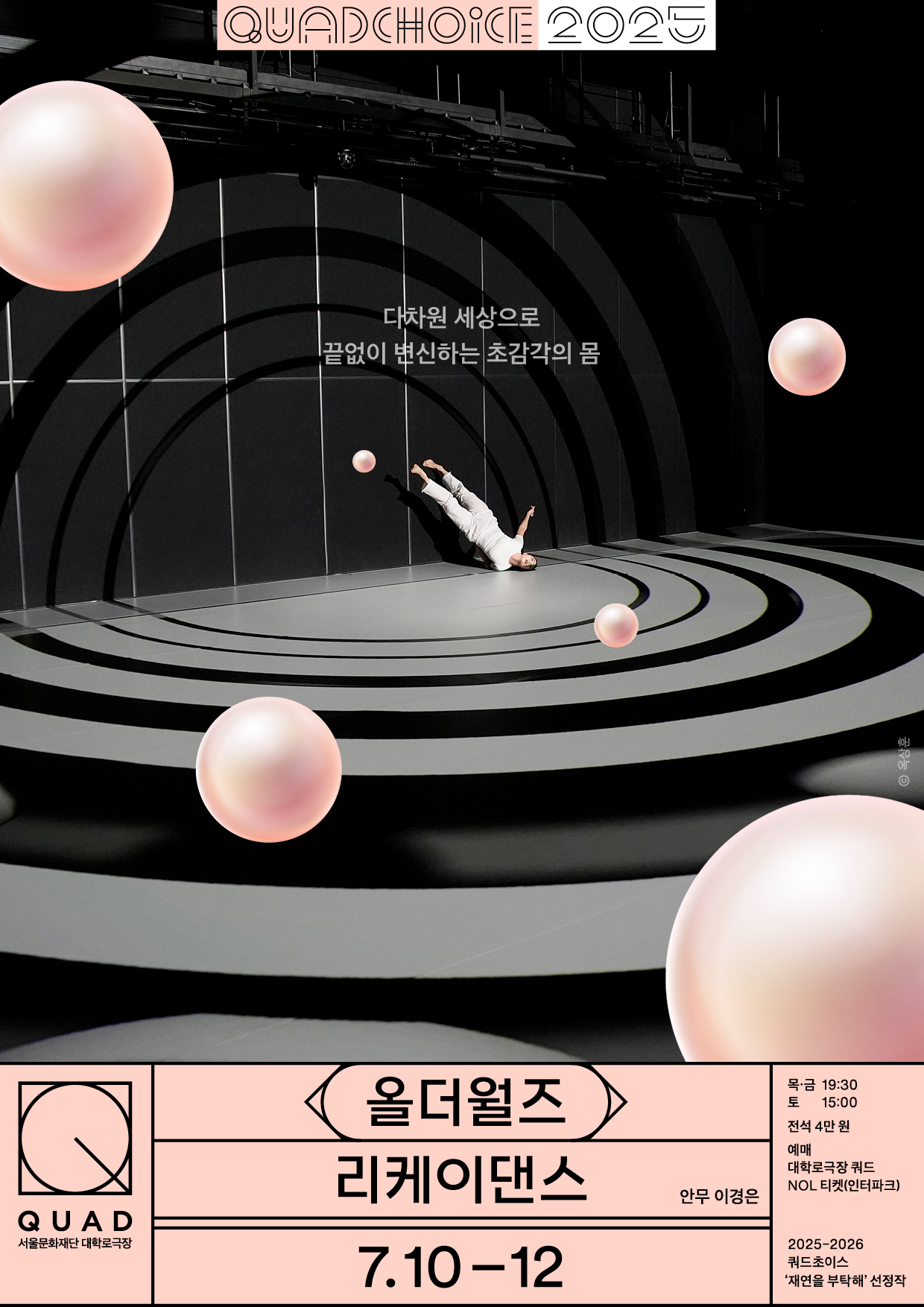 2025-2026 쿼드초이스 <재연을 부탁해> 첫 번째 공연인 리케이댄스의 ‘올더월즈’ 티켓은 대학로극장 쿼드 누리집(www.quad.or.kr)에서 구매할 수 있다. 전석 4만원.