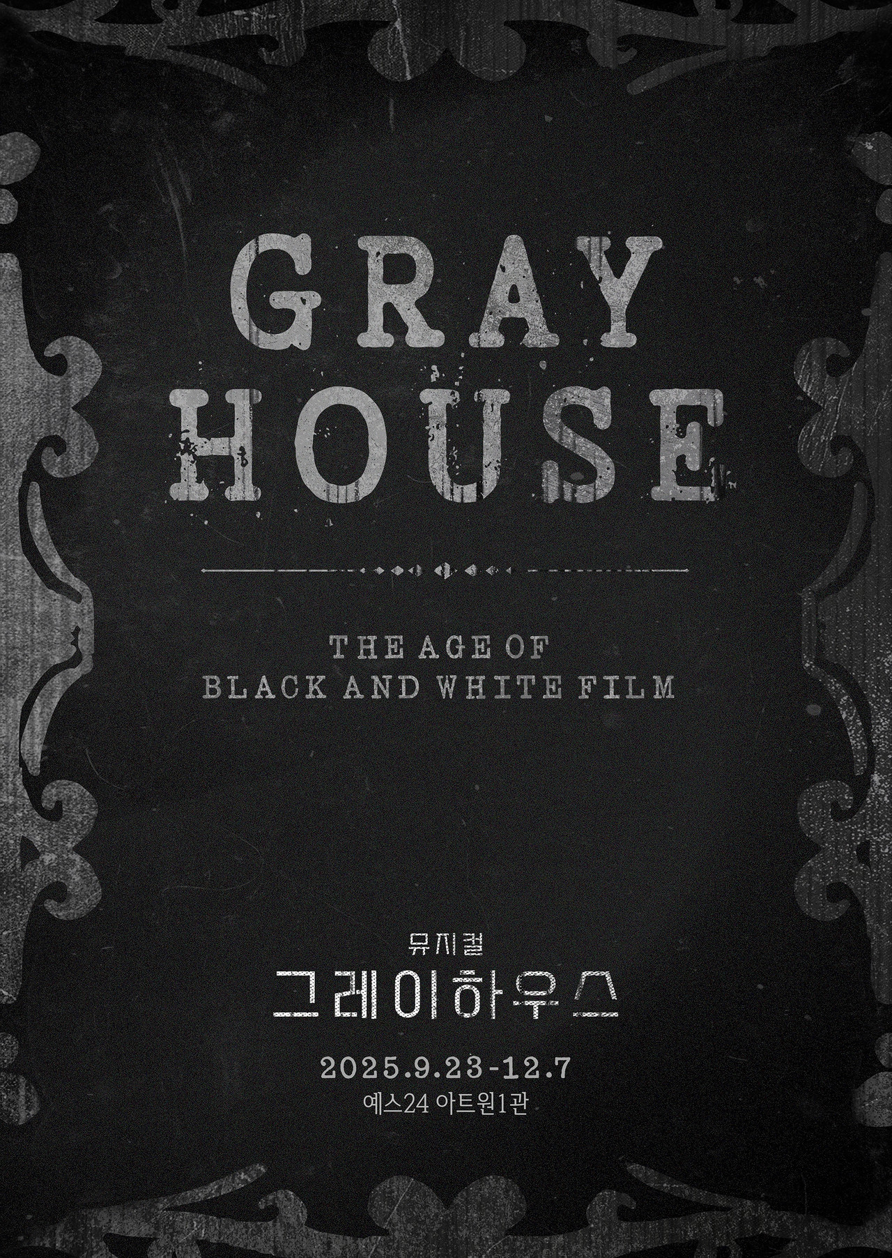 2023년 ‘글로벌 K-융합공연 프로듀서 육성사업’을 통해 쇼케이스 형태로 첫 선을 보인 뮤지컬 <흑백영화>가, <그레이하우스>라는 새로운 이름으로 돌아온다. 주목받았던 소재와 캐릭터를 바탕으로 한층 완성도 높은 서사 구조와 극적 밀도를 갖춘 작품으로 재탄생할 예정이다
