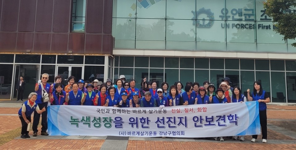 바르게살기운동 강남구협의회(회장 명노동)는 지난 19일 선진지 안보견학 일환으로 오산 유엔군초전기념관을 방문해 관람과 참배를 진행하고, 해설을 들으며 안보의식을 고취하는 시간을 가졌다.