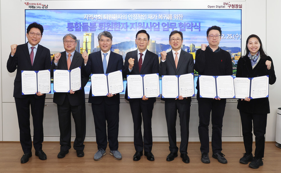 꿈이 모이는 도시, 미래를 그리는 강남구(구청장 조성명)가 퇴원 이후 돌봄 공백을 줄이고 지역사회 중심의 돌봄 체계를 강화하기 위해 2월 25일 구청에서 관내 6개 의료기관과 「통합돌봄 퇴원환자 지원사업」 추진을 위한 업무협약(MOU)을 체결했다. 협약 기관은 삼성서울병원, 연세대학교의과대학 강남세브란스병원, 강남베드로병원, 나누리병원, 메드렉스병원, 강남구립행복요양병원이다.
