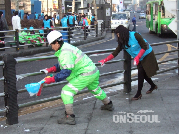 행사 주요 내용은 ▲버스정류장 물청소 ▲바닥 껌 제거 ▲쓰레기 줍기 ▲자동차 2부제 캠페인 ▲안보 관련 유인물 배포 등으로 코엑스 주변을 총 7개 구역으로 나눠 진행했다.