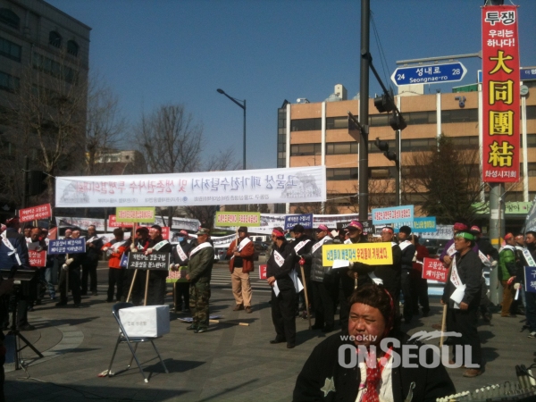이날 시위에는 현행 폐관법 개정을 촉구하는 자원재활용연대와 자원재활용협회 광진지부 소속 등 140여명의 고물상인들이 참석했다.