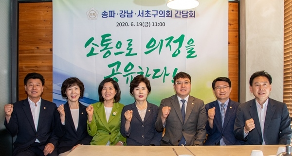 강남구의회(의장 이관수)ㆍ서초구의회(의장 안종숙)ㆍ송파구의회(의장 이성자)는 지난 19일 오전 송파구 소재의 음식점에서 ‘강남ㆍ서초ㆍ송파구의회 정기 간담회’를 가졌다.