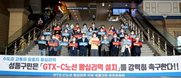 성동구는 이달 3일부터 TF팀을 구성하고 GTX-C노선 왕십리역 신설을 위한 전방위적인 노력을 펼치고 있다. 특히 지난 19일 열린 국토교통부 주관 ‘GTX-C 노선 전략환경영향평가서 주민설명회’에서 지역 주민들의 왕십리역 신설에 대한 강력한 요구가 이어졌으며, ‘GTX-C노선 왕십리역 신설 성동구민 추진위원회’에서는 다음달 31일까지 범국민 서명 운동을 추진 중이다.