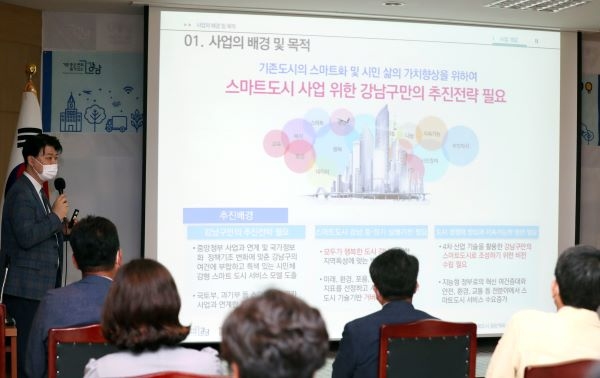 강남구는 6일 오후 지속 가능한 「강남구 스마트도시 종합계획 수립」 관련 중간 보고회를 개최했다. 강남구는 구민 및 공무원 대상으로 지역문제 해결을 위한 의견을 수합해 오는 9월말까지 4차 산업화 시대에 걸맞은 ‘스마트도시 강남’으로의 신성장 동력을 확보할 계획이다.