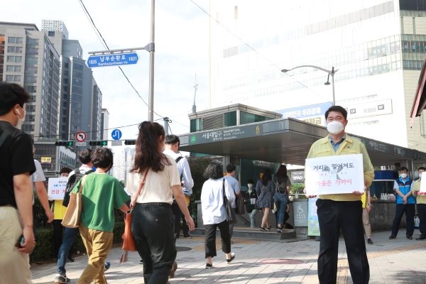 캠페인은 관내 지하철역입구와 거점 버스정류장 등 50여 개소에서 펼쳐졌으며, 주민들의 이동이 많은 출근 시간을 이용해 오전 8시부터 약 한 시간가량 진행되었다.