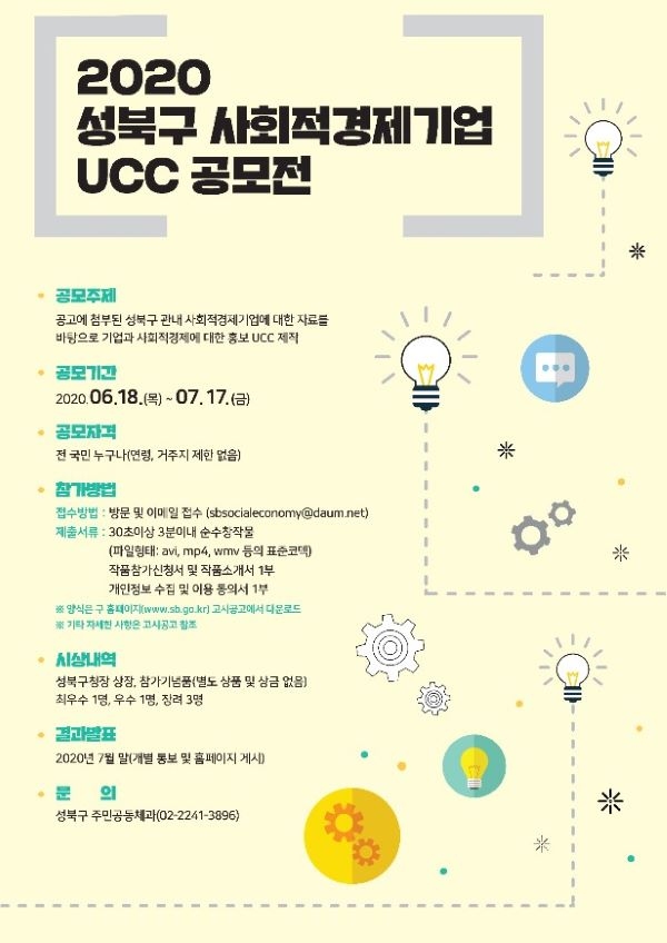 성북구(구청장 이승로)가 ‘2020년도 사회적경제기업 UCC 공모전’을 개최한다.