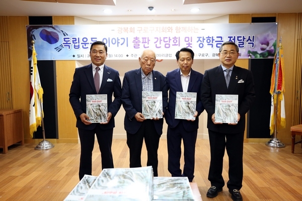 올 초부터 진행된 발간 작업은 최근 완성됐다. 이달 13일에는 서울구로로터리클럽 회원과 광복회 구로구지회 회원 등 18명이 참여한 가운데 출판 간담회를 열었다. 책은 관내 도서관과 각급 학교에 비치된다. 서울구로로터리클럽은 이날 행사에서 취약계층을 위한 장학금(100만원)도 전달했다.