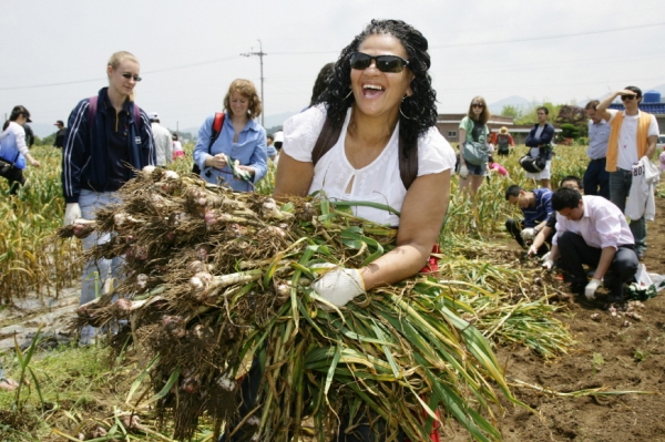 관광객 마늘 3종 경기는 마늘밭에서 마늘캐기, 자르기, 까기를 경기로 진행해 관광객의 참여로 획득한 마늘은 시중가격의 반값에 가져갈 수 있다.