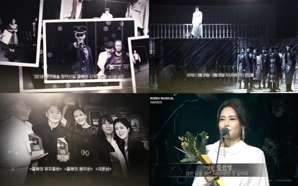 공개된 영상에는 정식 공연 전 진행된 창작산실 실연 심의부터 올해의 뮤지컬상 수상까지 뮤지컬 <HOPE>의 화려한 면면이 담겨있다.